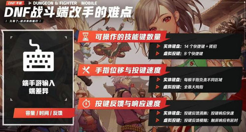 A:我们通过一些优化努力保留了这些原汁原味的设定到手机上。为了照顾大家的的手游操作,DNF手游设计了一键连招和滑屏设计到手机上。