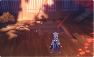 8、然后需要继续往里面走,然后在靠近绿色的“树叶”状的位置就会回到起点,只需要往门里走,在大厅继续借助绿色的“树叶”状传送进去,然后在愚人众房间左边屏障后面就是最后一个宝箱了。