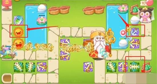 9.第八波右侧加一鱼骨头升一级,随后升满级,中间船锚升满级,左侧加一太阳花,右上角加一船锚。