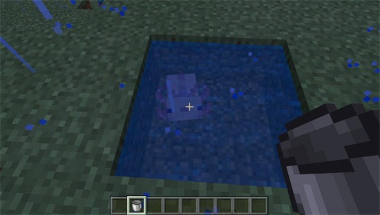 1,首先我们拿着铁桶右键点击在水中的蝾螈。