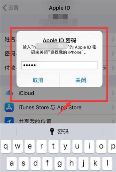 4.在弹出的菜单中,输入Apple ID 密码,点击关闭