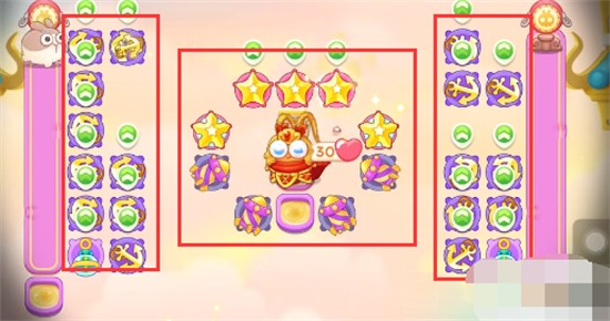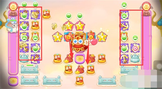 3、右侧钱袋开完之后在左侧放置满级鞭炮和星星,开左侧的钱袋,注意别漏怪。
