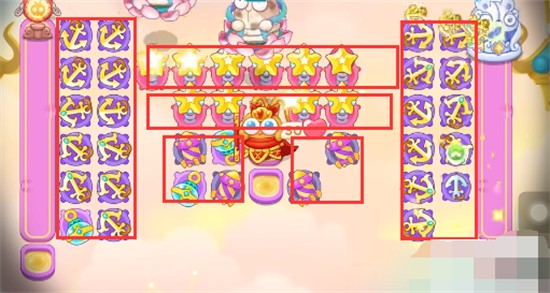6、最终布局如图所示,中间全部放置星星,两侧全部放置船锚,每个区域放置泡泡塔减速。
