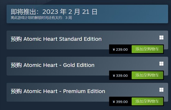 《原子之心》确定了新发售日2023年2月21日,目前国区的Steam普通版预购价239元,并且还有黄金版和高级版,支持中文,登陆PC、PS4、PS5、XSX|S以及Xbox One平台,首发加入XGP。