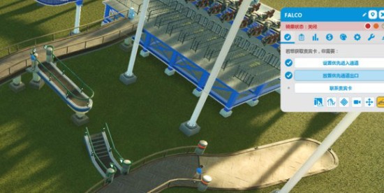 2.快速通道:先在设施入口通道尽头附近开个快速通道出口,再在入口通道的末端开个快速通道入口,连接它。 出入口是有方向的,造的时候可以调节。
