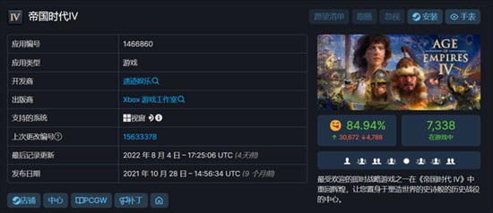 2.《帝国时代4》是微软推出的RTS游戏,可在Steam(特别好评)和Microsoft Store上购买,支持PC平台,支持简体中文。Xbox Game Pass用户可以免费游玩。