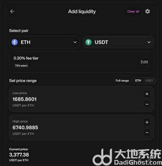 2.选择你想投入的币对,例如ETH–USDT,确认好手续费后就可以送出并开始赚取流动性奖励。