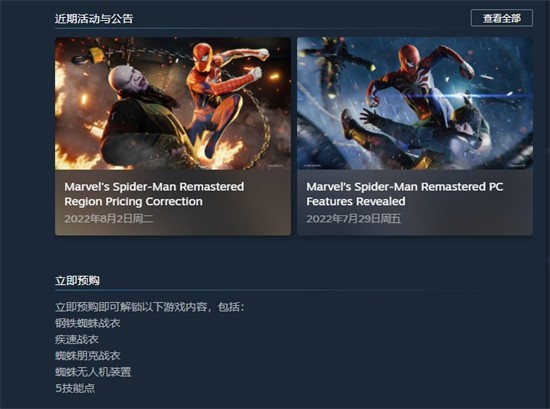 以上就是漫威蜘蛛侠重置版预购奖励介绍全部内容,希望可以帮到大家。