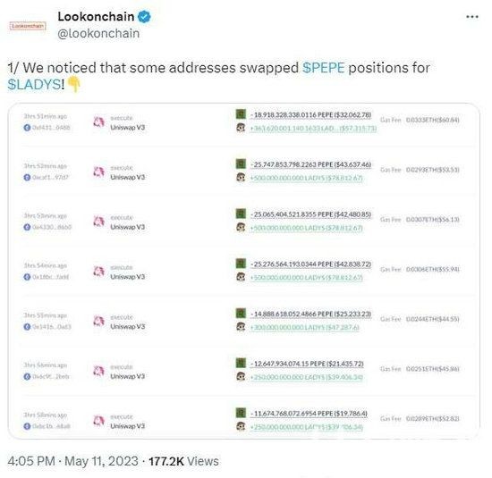 3、多个PEPE 币持有者转仓至LADYS