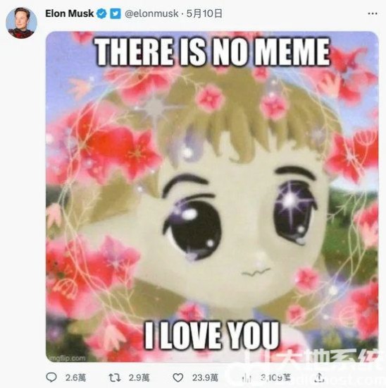 2023 年5 月10 日,马斯克在推特发布Milady Maker NFT 的梗图,上面写道「There is no meme,I love you. 」