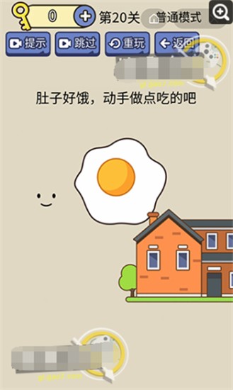 房子后面有一片白放到太阳上,再把太阳的笑脸移开,变成荷包蛋了。