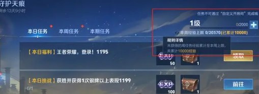 新版战令的经验值很容易达到每周上限,优化后可以将上周未获取的经验继承到下周上限中去,经验积累最高上限为10W点,即一周上限为2W,连续一周未登陆,下周就可以获得4W的上限。