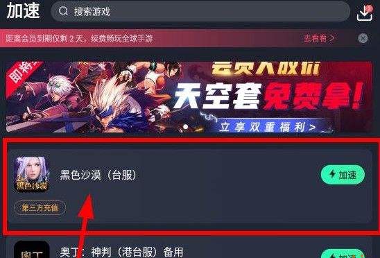 3.然后在加速器里搜索黑沙手游,找到台服,选择下载