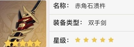 3、赤角石溃杵:是五星武器,荒泷一斗与它有很强的适配度,使用后将会提高普攻和重击造成的伤害值。