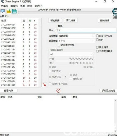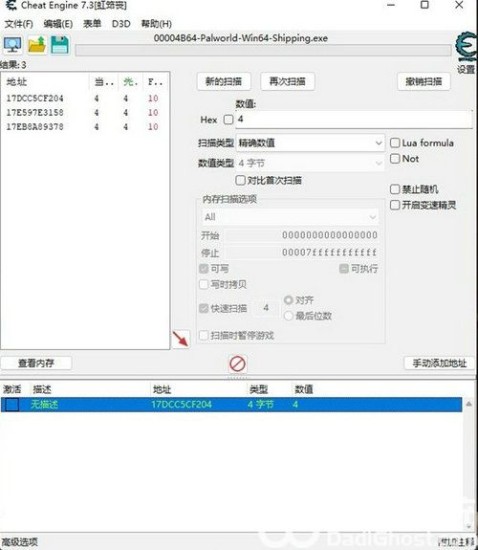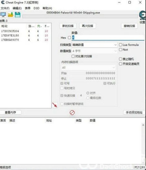 有十个石头,那么就在Hex栏输入10,然后点击首次扫描。