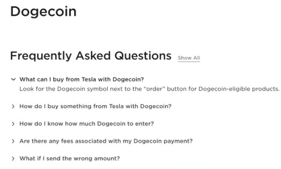 特斯拉官网新增狗狗币支付(DOGE)!马斯克很快将重启比特币付款?
