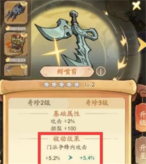 4. 升级奇珍:在奇珍系统中,玩家需选择想要升级的奇珍,并使用之前获得的凤凰羽进行升级。随着凤凰羽的融入,奇珍的属性将得到显著提升,为玩家的冒险之旅增添更多助力。