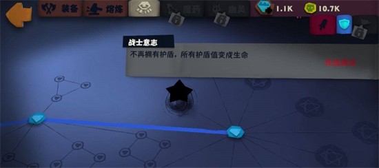 3.第三个核心天赋点出“战士意志”,护盾对于消耗血的战士来说,压根没作用