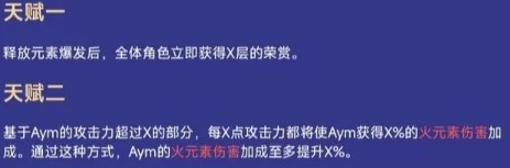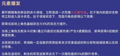 7、天赋:能够让全体角色获得一定层数的荣赏效果,超出一定的攻击力后,火神获得额外的火元素伤害加成。