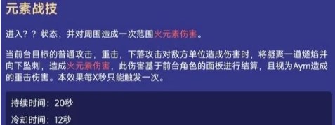 3、元素战技:进入特殊状态,会触发普攻特殊状态,对周围造成一次火元素伤害。