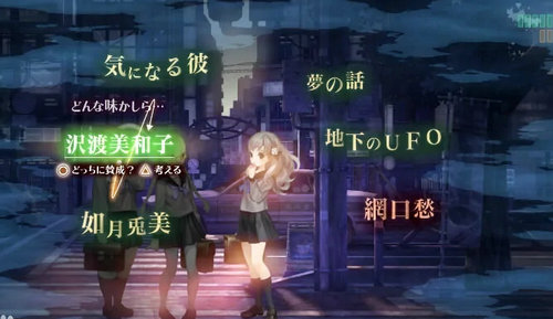 解开13人各自的谜团,思考在对话中收集到的关键词,将其转换为不同的关键词或是把关键词用在其他对象身上,也有可能获取新的关键词。13个主角都有各自关联较为密切的角色与专用章节,不断推进故事剧情,就那窥探出隐藏在各个角色之间的复杂关联性,以及各自分歧点