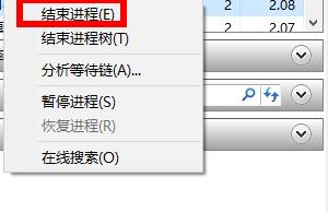 4、搜索这个无法删除的文件,右击选择“结束进程”即可