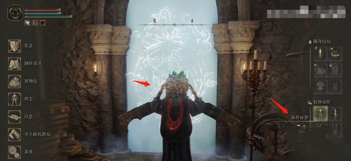 接着,穿戴双贤辉石头罩和使用深具睿智姿势,打开魔法屏障门。