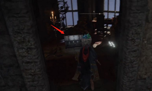 然后,进入大门,前往顶层阁楼,在阁楼里看到一个铁箱。