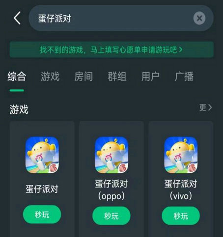 步骤2:找到《蛋仔派对》并点击“秒玩”