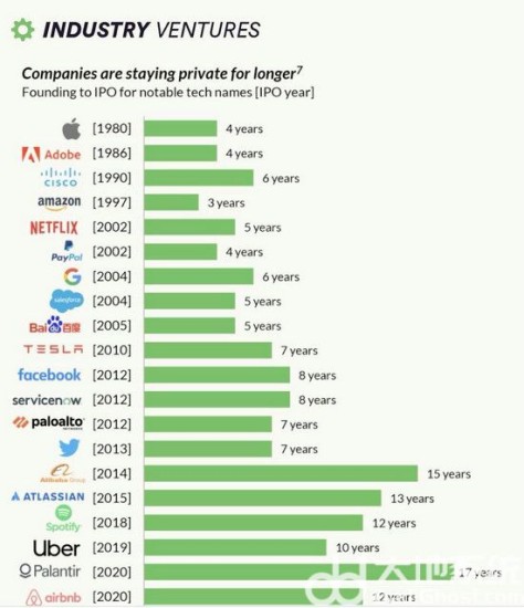 公司愿意保持私有化更长时间的一个重要原因是,风险投资者现在的资金比十年前多了五倍。公司现在可以在私人市场筹集 10 亿美元以上的资金,并且不必处理公开市场的额外开销。
