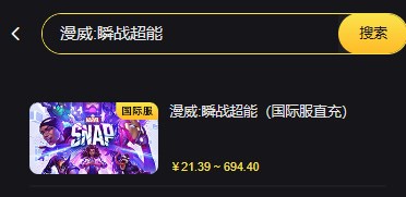 2、在“我的-国际代充”搜索框找到游戏【漫威:瞬战超能】;