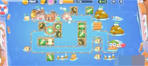 3、中期有木桶兔,火瓶会比较好打一些,没有的话就多放鱼刺,炮塔集中在左右两个区域。