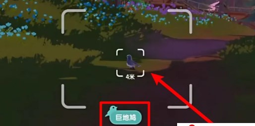 2. 到达指定地点后,开启右下角的扫描功能,切换到拍摄模式。仔细观察周围环境,找到巨地鸠后进行识别和拍照。