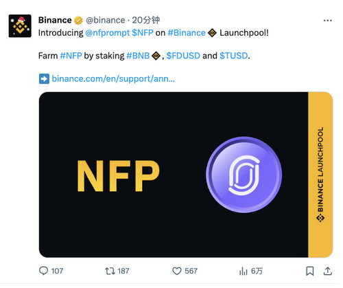 12 月 19 日下午,币安官方宣布新币挖矿 Fair Mode 已上线第 41 期项目 NFPrompt(NFP)。