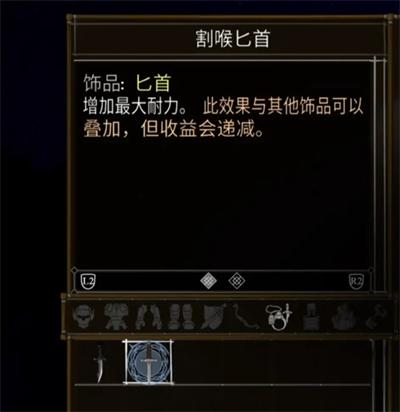 一个饰品。增加最大耐力。此效果 与其他饰品可以叠加,但收益会递减。