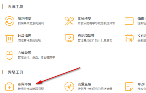2.然后在打开的页面中找到【断网修复】选项,点击打开。