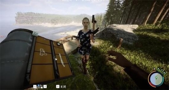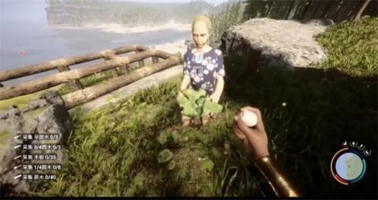 1、搭建一个木屋,她就会是时不时出现,靠近自己的时候,不用管她,收起武器就做自己的事情就行。