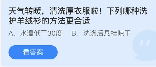2、天气转暖清洗厚衣服啦下列哪种洗护羊绒衫的方法更合适?