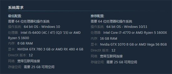 处理器: Intel Core i7-4770 or AMD Ryzen 5 1600X