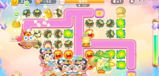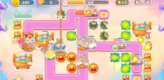 4、第二个神仙是拿葫芦的,玩家还是要跟着移动路线里放炮塔,先把之前的升满级,后面几波有仙女兔,还有小偷兔,来的很频繁,玩家要多注意。
