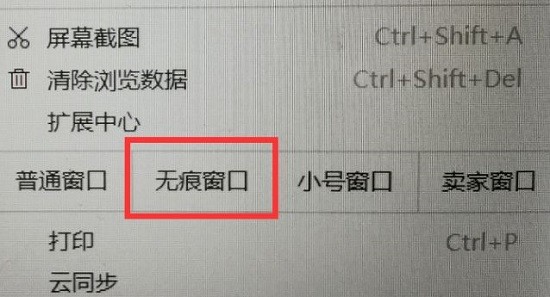 2、接着点击下拉菜单的“无痕窗口”按钮