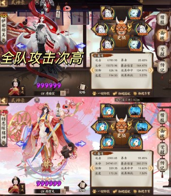 SP追月>千姬>200速>伊邪那美(攻击次高)>SP大缘>晴明>天照(攻击最高)
