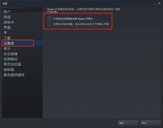 2.点击steam客户端左上角steam,点击设置,选择云服务,云储存同样取消勾选。