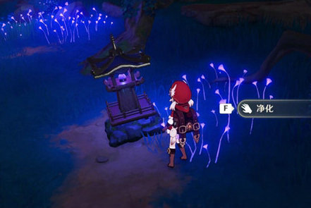 1、首先找到图中的灯柱,互动后选择净化
