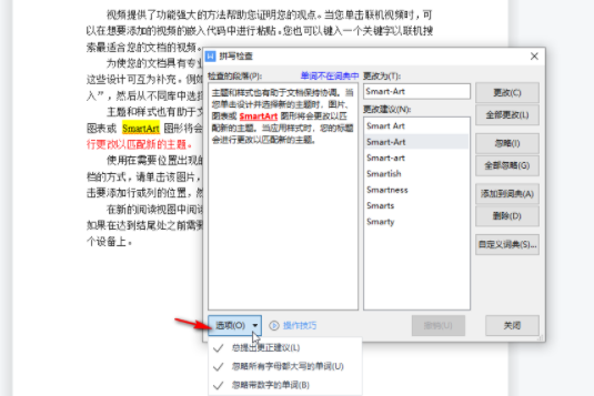 第四步:在窗口中点击“选项”按钮还可以点击设置忽略指定内容等等;