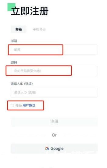 2、在注册页面,根据提示填写信息(邮箱、登录密码等),勾选“接受用户协议”,点击“注册”。