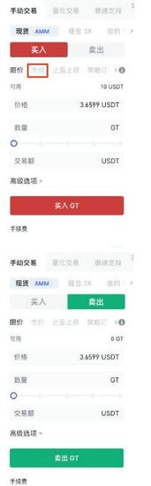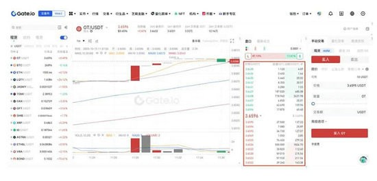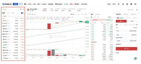 5、进入“现货交易”页面后,可以在左侧市场选择交易对进行交易(以GT_USDT为例)。