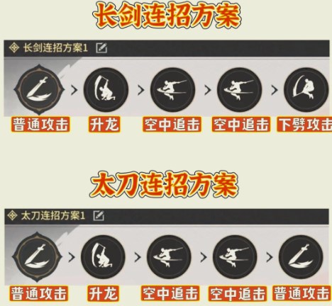 长剑:普通攻击-升龙-空中追击-空中追击下劈攻击,这套连招能让你在战场上所向披靡!