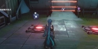 1、跟随任务来到一个被激光挡住的房间门口,接着拾取前方方块放在一个压力板上,角色踩在另一块压力板上。