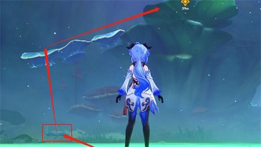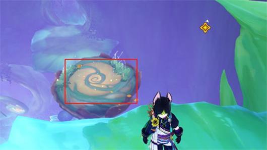 6.完成了之后就可以获得一个普通的宝箱,再触摸一下这个蓝色的花,利用下面的蘑菇往上面跳上去。